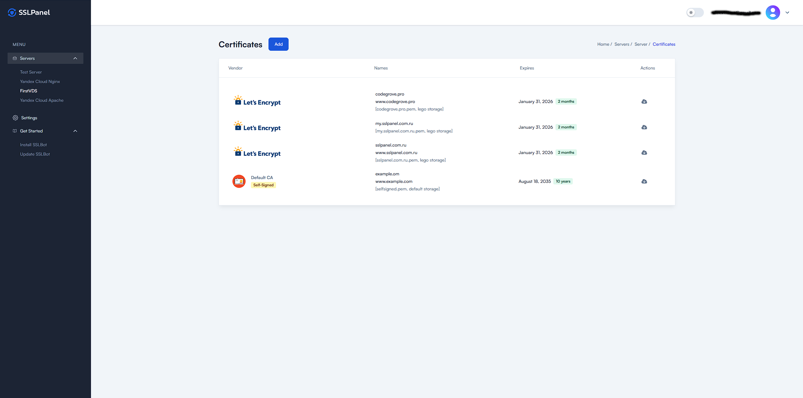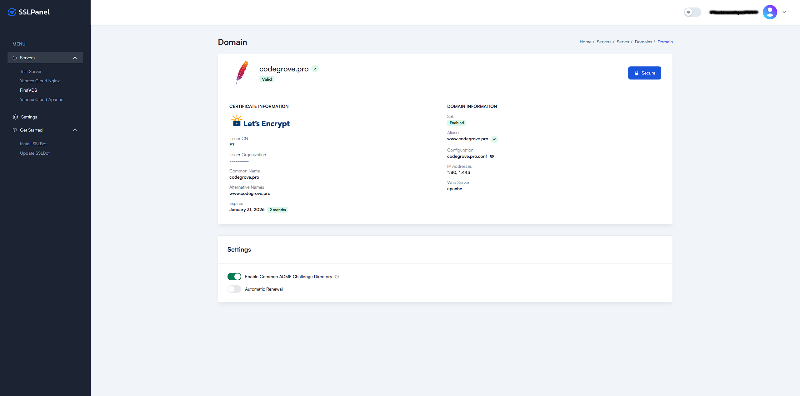 Instantly get a trusted Let's Encrypt certificate for your domain with one click.